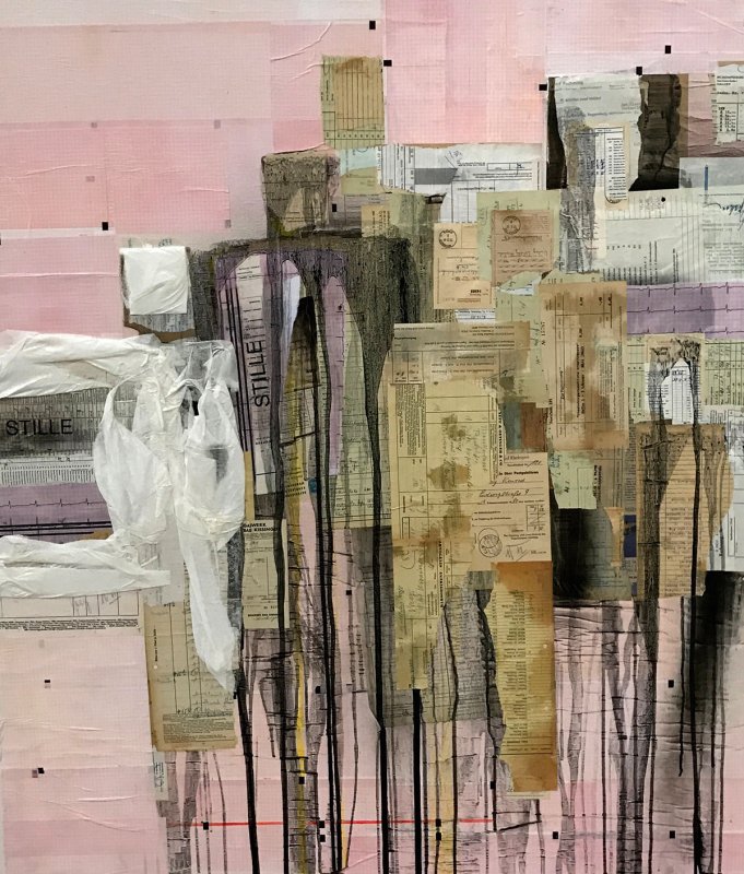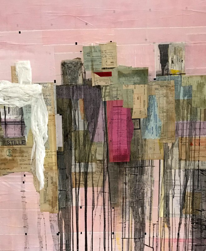 LEBENSLINIEN 2, 2017, Mischtechnik-Collage auf Leinwand, 120x100cm