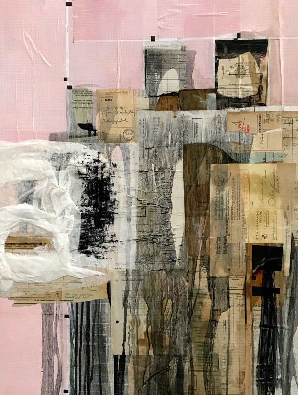 LEBENSLINIEN 1, 2017, Mischtechnik-Collage auf Leinwand, 120x100cm