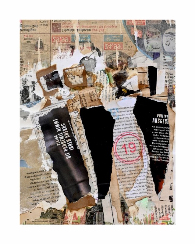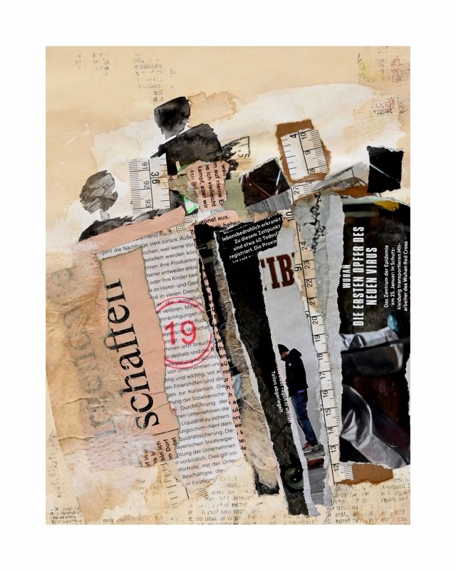 ZEITZEUGEN 31, 2020, Mischtechnik-Collage auf Papier, 28x20cm