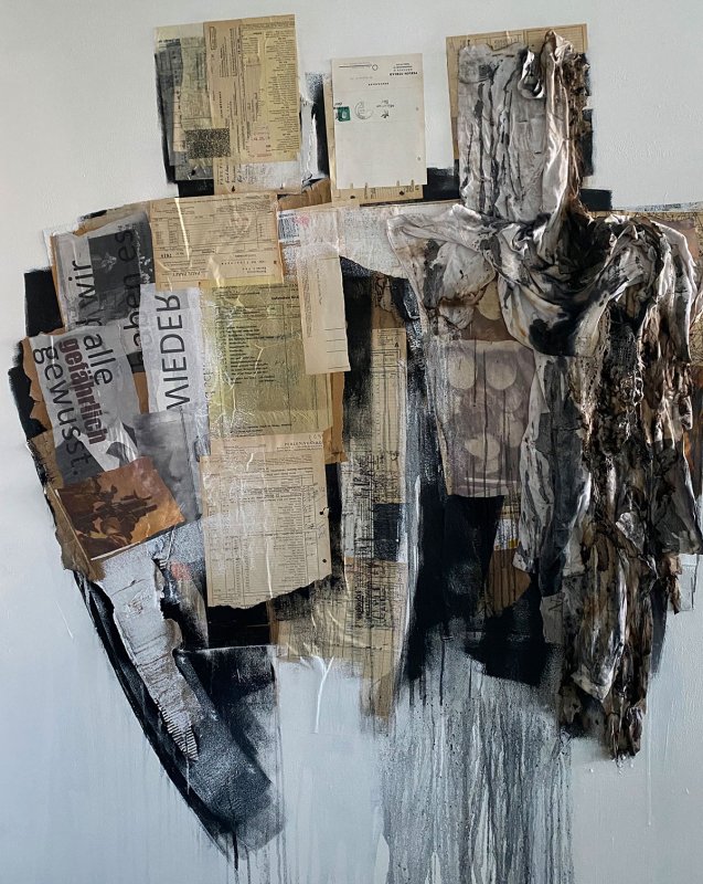 ZEITZEUGEN 33, 2022, Mischtechnik-Collage und Stoff auf Leinwand, 150x120cm
