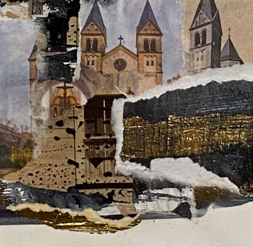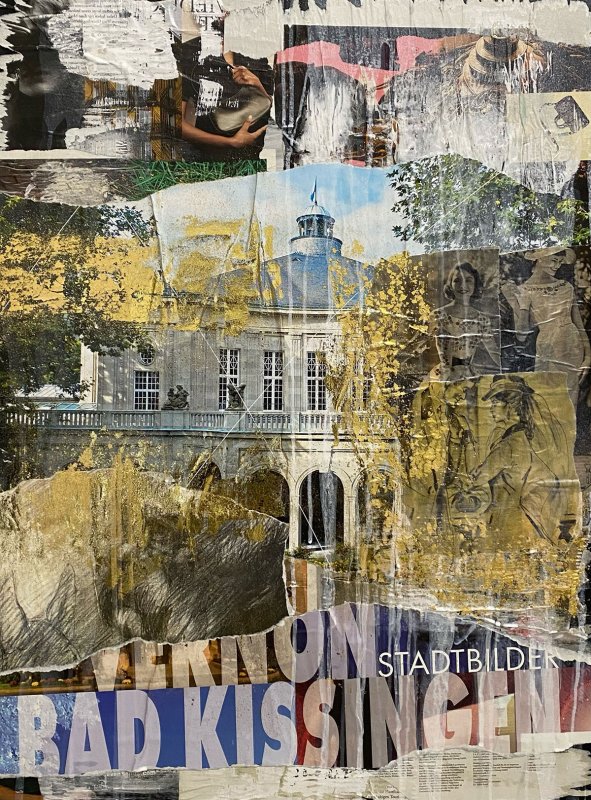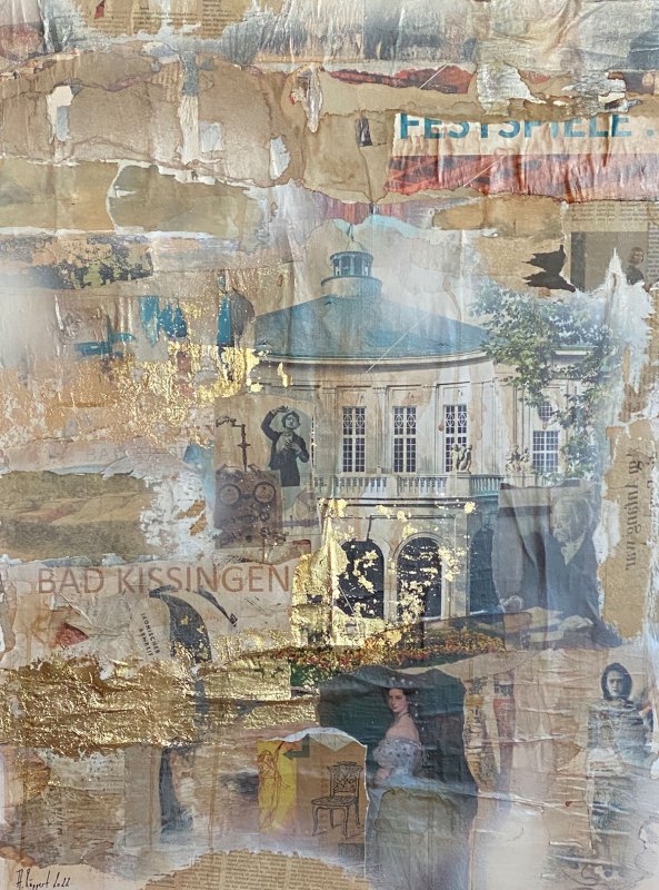 BAD KISSINGEN 2022, Mischtechnik-Collage und Blattgold auf Leinwand, 80x60cm