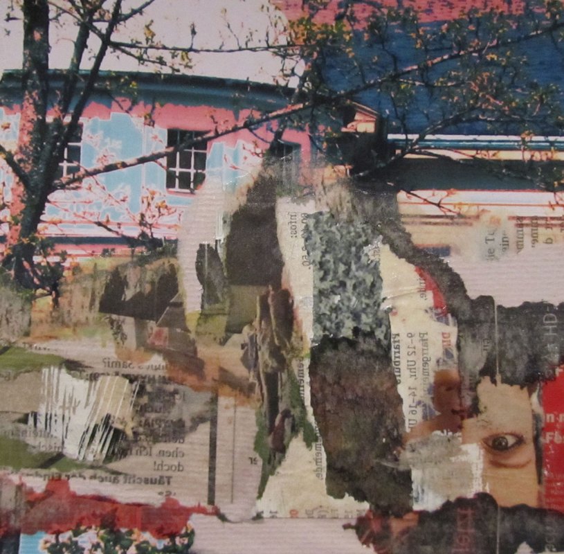 HEIMATSTÜCK 1, 2013, Mischtechnik-Collage auf Fotografie, 14x14cm