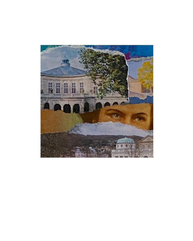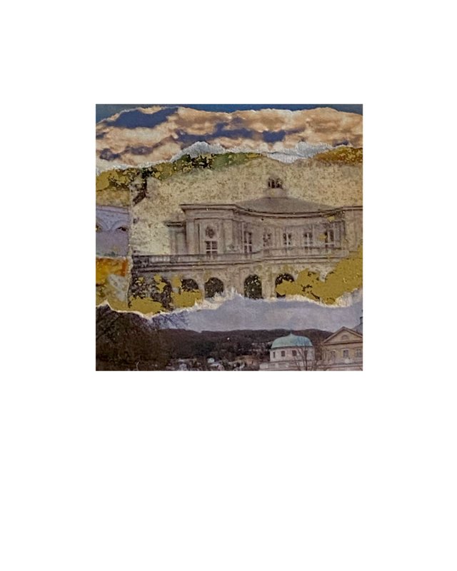 BAD KISSINGEN 2, 2022, Mischtechnik-Collage und Blattgold auf Leinwand, 80x60cm