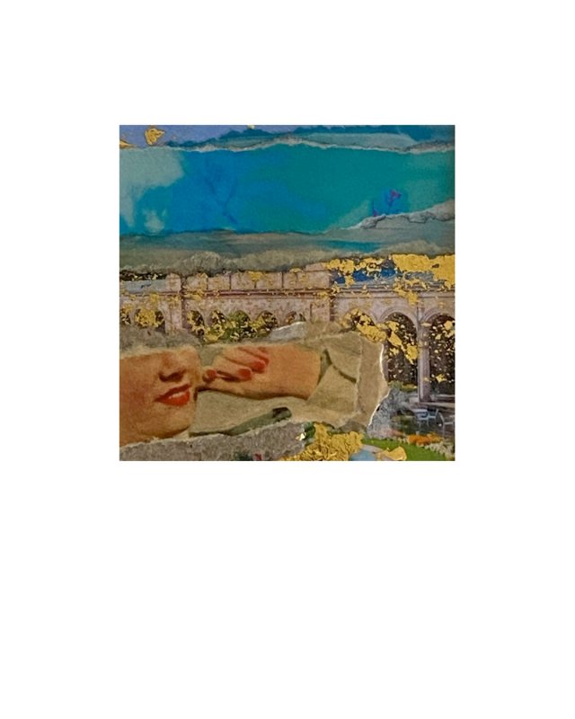 HEIMATSTÜCK 50, 2022, Mischttechnik-Collage und Blattgold auf Papier, 7x7cm