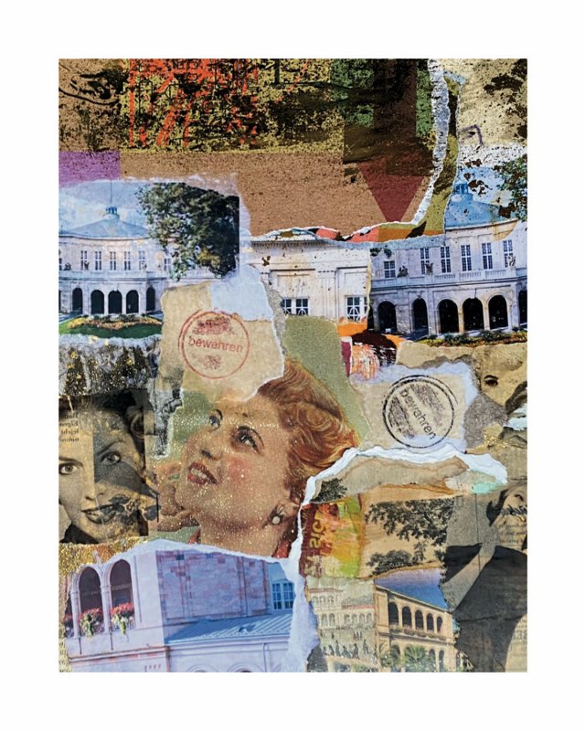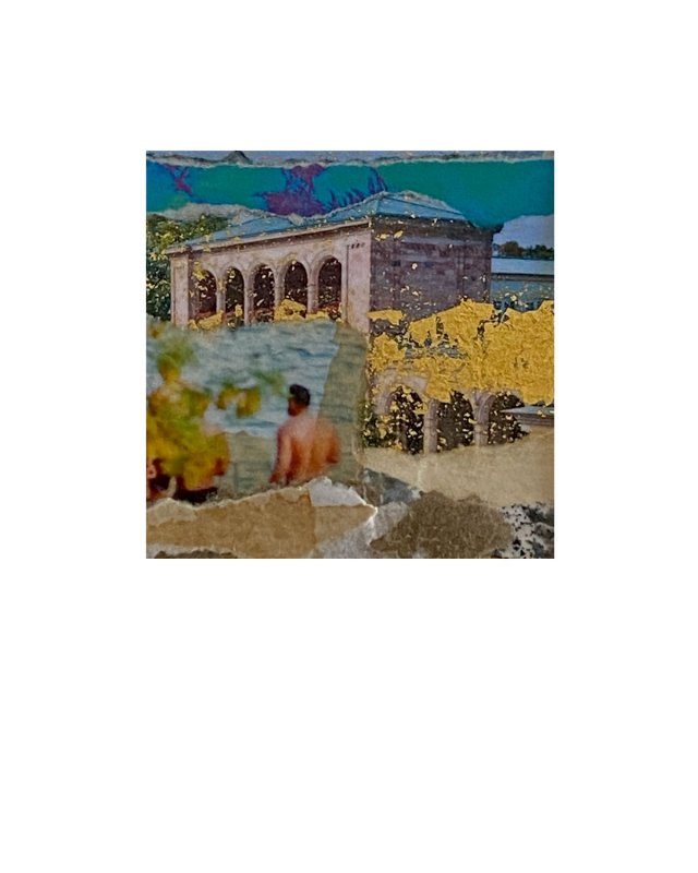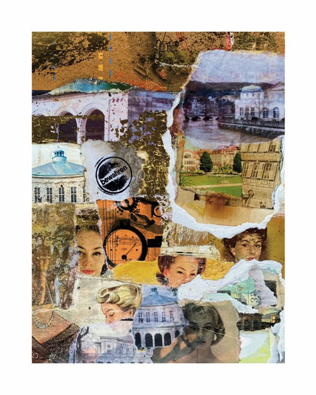 BAD KISSINGEN 3, 2022, Mischtechnik-Collage und Blattgold auf Leinwand, 80x60cm
