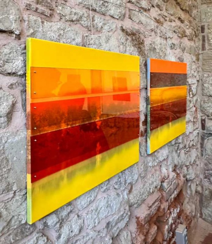 AM SEE 1 + 2, 2024, Mixed Media und Plexiglas auf Leinwand, 60x80cm